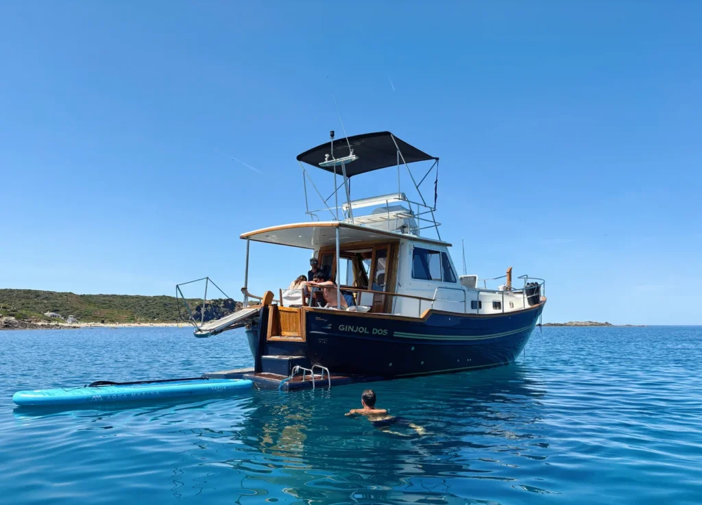 ¡Llaut Menorquín, tradición y lujo en el mar! Este magnífico llaut de 12 metros combina estilo clasico con todas las comodidades modernas. Es perfecto para grupos grandes. Con capacidad para 11 personas, ofrece un amplio espacio y un gran solárium en proa ideal para relajarse bajo el sol. En su interior no le falta detalle, equipado con dos camarotes, cocina y baño. Perfecto para quienes buscan un día de navegación con el máximo confort y seguridad, este barco es la elección ideal para disfrutar de Menorca desde el mar.